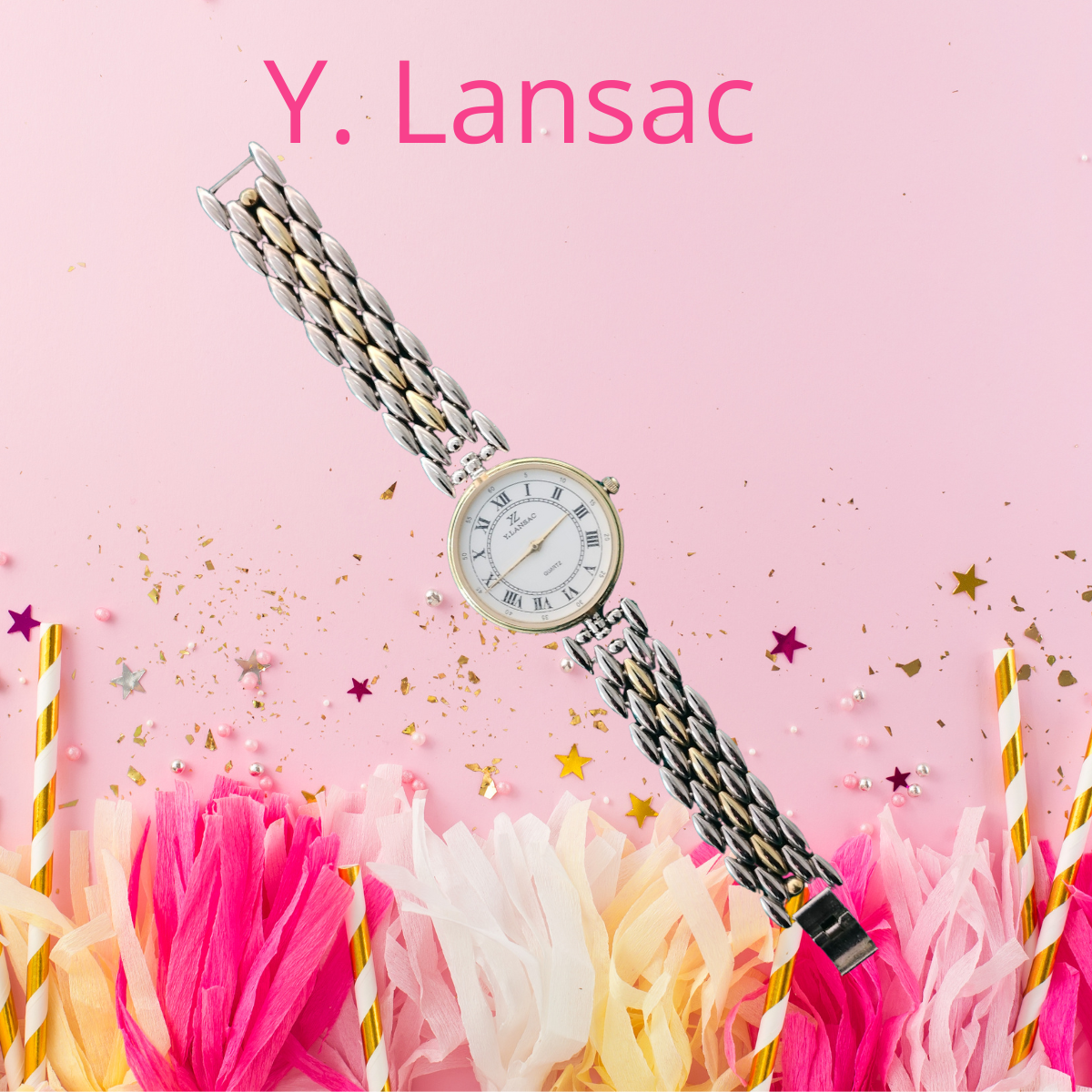 Montre vintage Y. Lansac a deux aiguilles, bracelet à fermoir clip argent et or, excellent état.