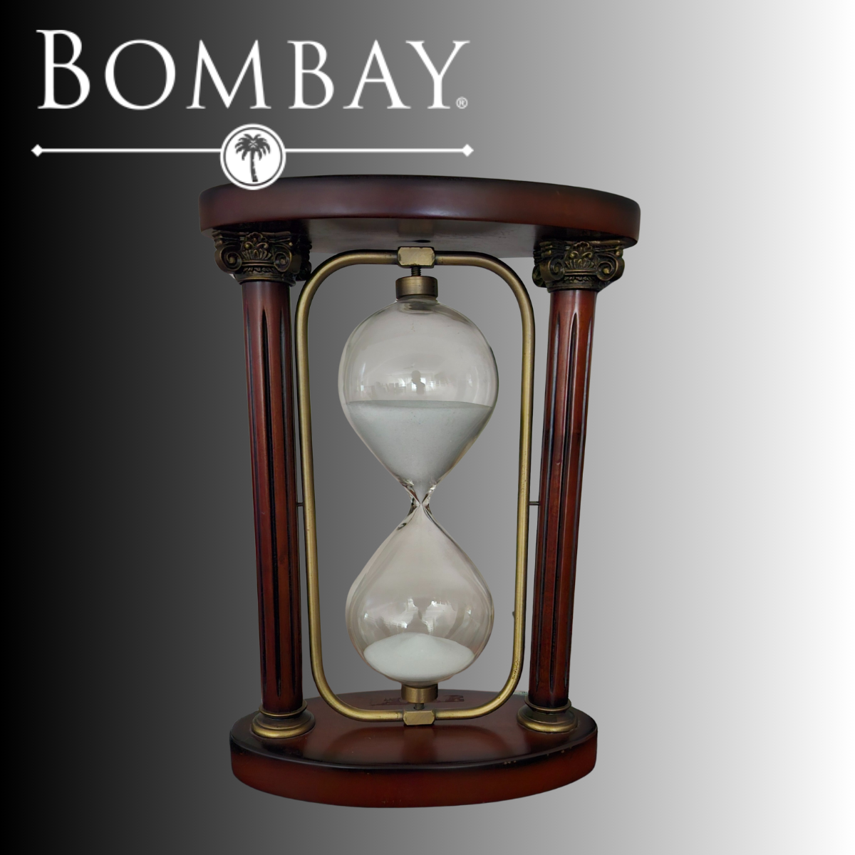 Sablier Bombay Company en laiton et acajou, à bascule, style vintage, 20,5 pouces (26,5 cm), durée de 60 minutes. Excellent état.